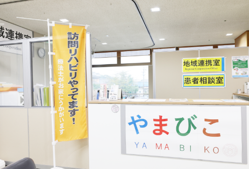 当院では、「地域連携室(やまびこ)」が窓口となり、地域の医療機関からのご紹介に対応し、紹介患者さまの診療予約を手配する業務を行うとともに、患者さまや家族さまからの各種相談対応も行っています。